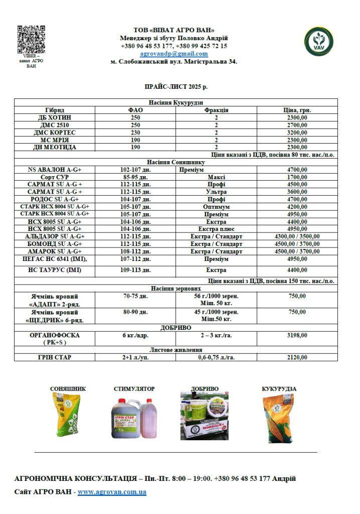 Актуальні ціни на якісний посівний матеріал та добрива від АГРО ВАН, ДІЮТЬ ЗНИЖКИ !!! – ТЕЛЕФОНУЙТЕ +380 96 48 53 177 , +380 99 425 72 15 Андрій Половко (менеджер/агроном ТОВ “ВІВАТ АГРО ВАН”).